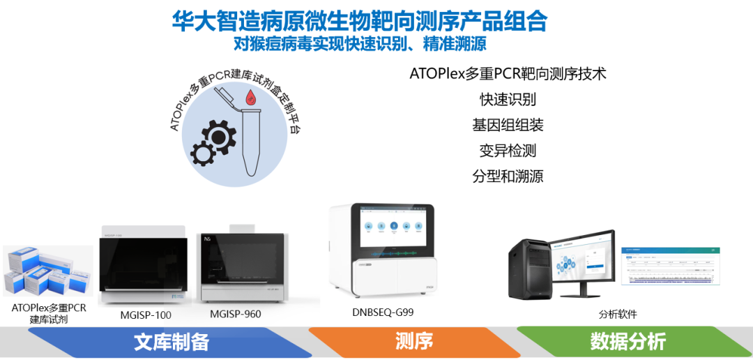 為了助力疾控系統提升應急溯源能力,華大智造已經為各級疾控中心提供了可實現猴痘病毒快速鑒定及溯源的病原微生物靶向測序產品組合,相關設備及產品已投入運營。