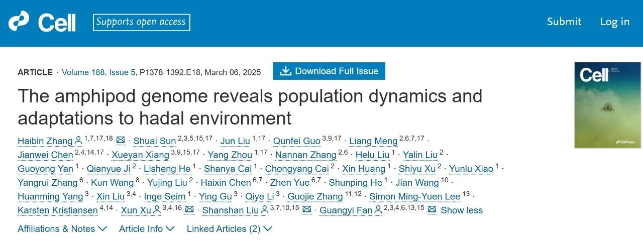 [3] The amphipod genome reveals population dynamics and adaptations to hadal environmenthttps://www.cell.com/cell/fulltext/S0092-8674(25)00099-6