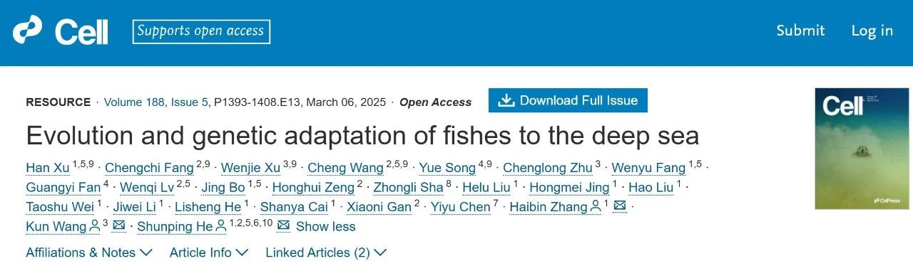 [4] Evolution and genetic adaptation of fishes to the deep seahttps://www.cell.com/cell/fulltext/S0092-8674(25)00031-5
